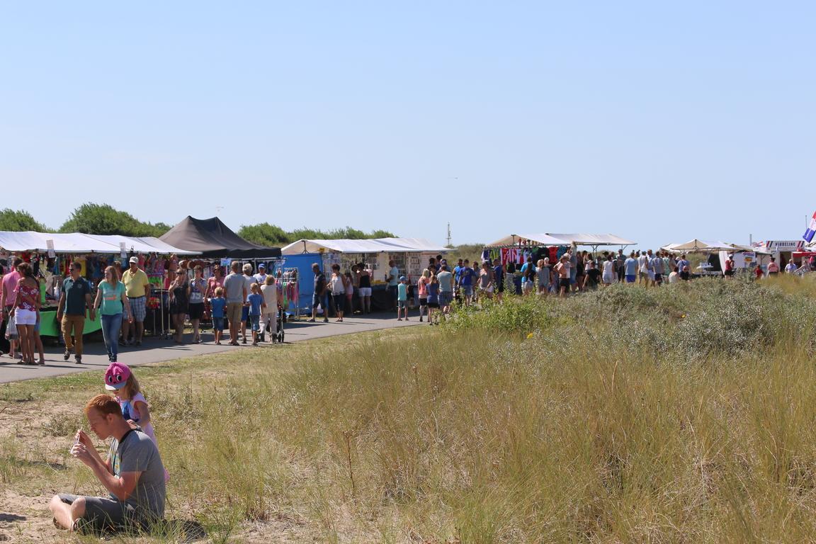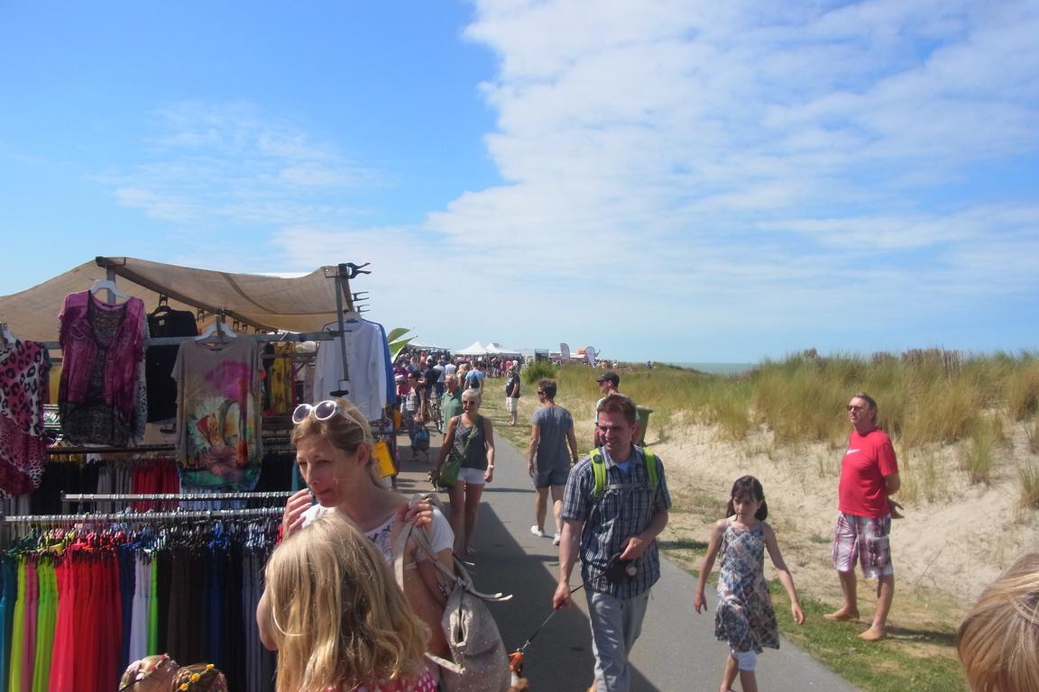 Rommelmarkt und Dünenwegfest in Nieuwvliet-Bad: Auf dem Weg der Deichkrone zwischen Nieuwvliet-Bad und Groede mit Blick über Dünen, Strand und Nordsee tummeln sich Einheimische und Gäste ein Mal im Jahr auf Nieuwvliets „Zomermarkt“: 120 fliegende Händler bieten modische Sonnenbrillen, Bikinis und T-Shirts, praktisches Werkzeug und Zubehör für Auto, Motorrad und Fahrrad oder flechten Rasta-Locken und neonfarbene Haarsträhnen. Zwischendurch laden Gastro-Stände mit geräuchertem Aal und Pommes-Frites, „Pannekoeken“ und Waffeln zum Pausieren vom Shopping und Sightseeing auf den Dünen von Nieuwvliet-Bad ein.