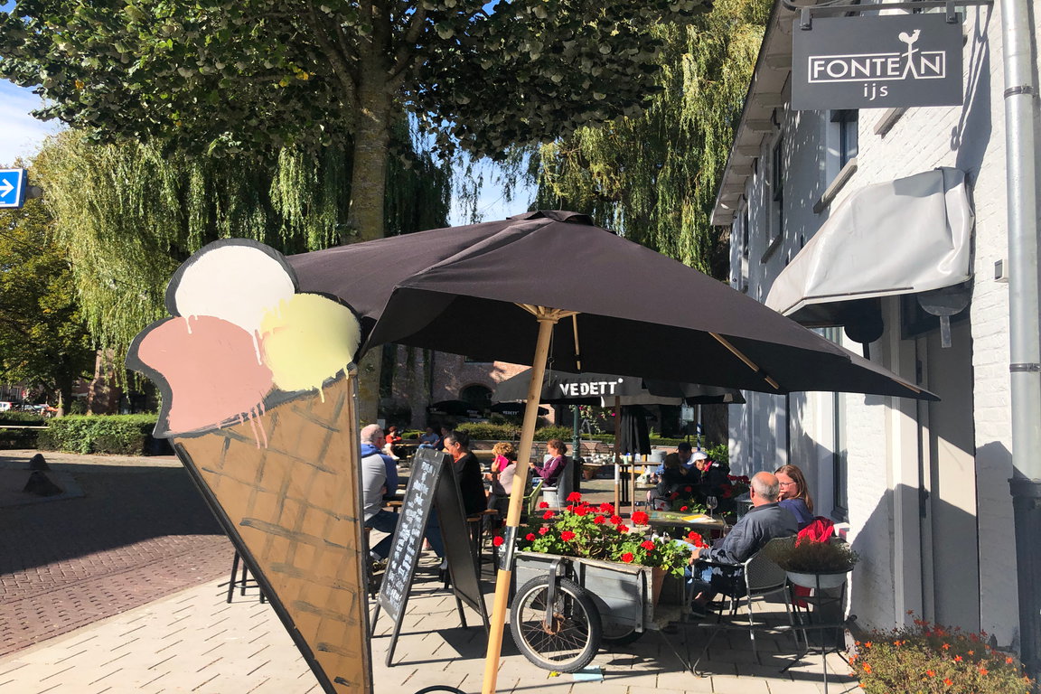 An der Ecke des zentralen Platzes rund um die „Grote Kerk“-Kirche im pittoresken Groede liegt „Fonteyn“ – Cafe und Eissalon mit einer Terrasse am Brunnen und unter beeindruckenden Trauerweiden. Drinnen und draußen genießen Gäste hausgemachte Kuchen, kleine Lunchgerichte und Snacks, gesundes Frühstück, köstliche Kaffee- und Teesorten, eine große Auswahl an Bierspezialitäten und nicht zuletzt hausgemachtem Eis von Ice-art aus Breskens.