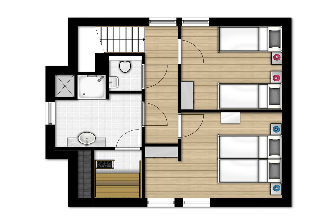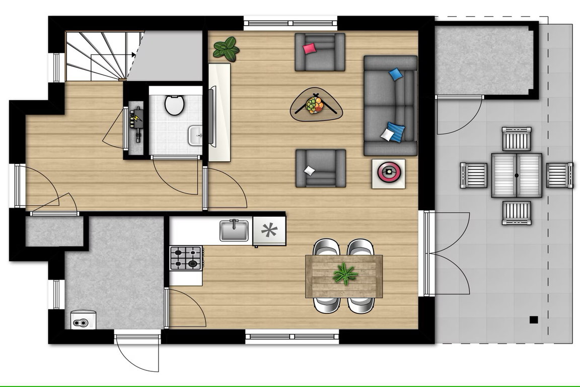 Frühstück, Mittagessen oder Abendessen kann bequem in der praktisch und komplett eingerichteten Küche zubereitet werden; Geschirrspüler, Kombi-Mikrowelle, Kaffeepadsystem und Kühl-/Gefrierkombination erleichtern die Arbeit im Haushalt während des Urlaubes in Cadzand-Bad. Neben dem Wohnzimmer mit Essplatz und der Küche befinden sich im Erdgeschoss noch ein Abstellraum und eine separate Toilette. Das Obergeschoss des Ferienhauses in der „Noordzee Residence Cadzand-Bad“ bietet zwei Schlafzimmer, davon ein Zimmer mit TV, ein Badezimmer mit Dusche, eine Infrarotsauna und eine separate Toilette. Gäste, die ihre Fahrräder mit in den Urlaub bringen, können diese im Fahrradschuppen, der direkt am Ferienhaus ist, unterstellen.