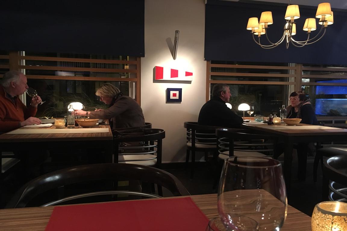 Trotz Begeisterung für Hummer aus der Oosterschelde und nordamerikanische Lobster wählten wir als Vorspeise Austern (16,- €) und als Hauptspeise die „Bouillabaisse van Noordzeevis“ (28,50 €) sowie einen südafrikanischer Chenin Blanc mit leichter Zitrusnote als empfohlenen Hauswein.