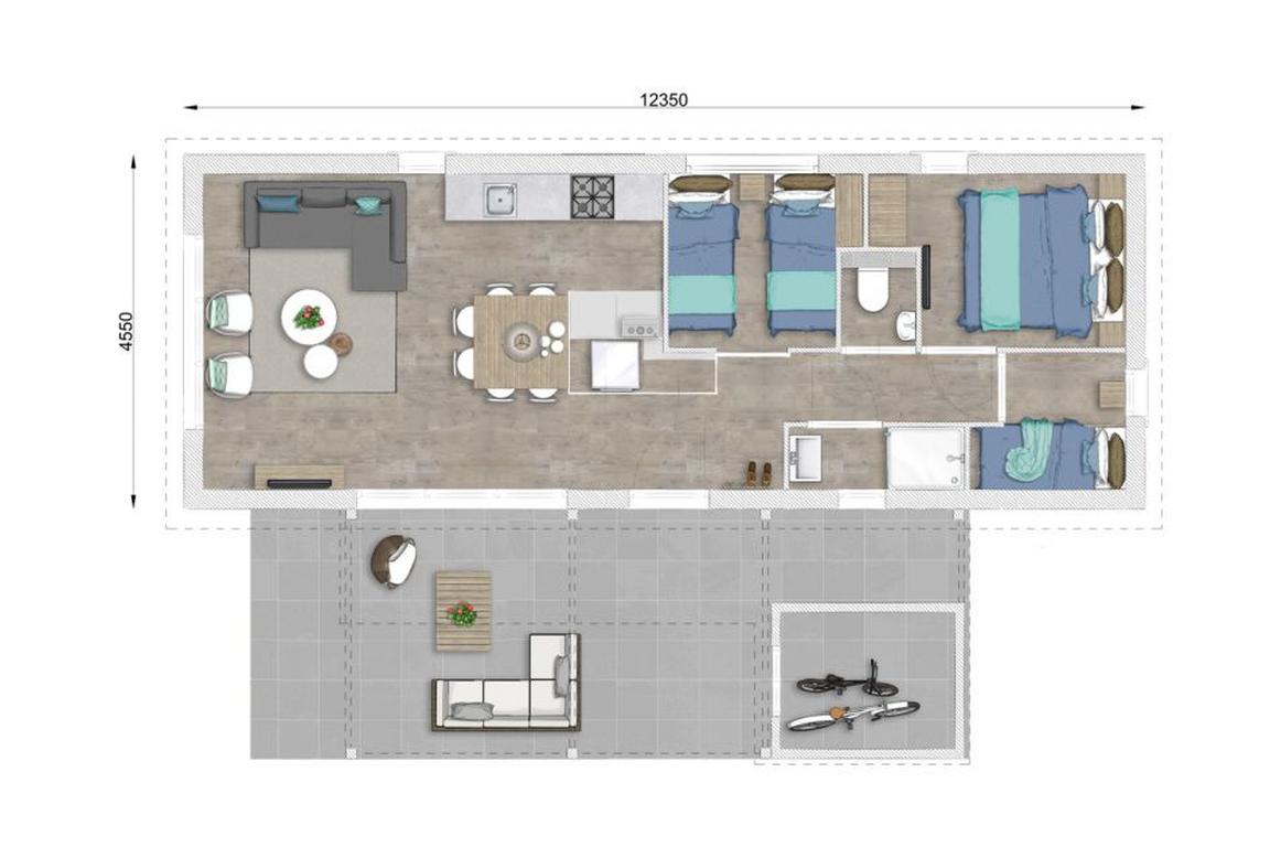 Die ebenerdigen Lodges L6A im „Beach Resort Nieuwvliet-Bad“ sind ähnlich gebaut und ausgestattet wie die Lodges L4A, bieten jedoch auf 56 Quadratmetern Grundfläche Platz für sechs statt für vier Personen: Sie haben drei Schlafzimmer, davon sind zwei mit bequemen Boxspringbetten eingerichtet, jeweils eines mit Doppelbett und Smart-TV-Gerät, das andere mit Einzelbetten; ein Schlafzimmer ist mit einem Doppelstockbett ausgestattet. Das zusätzliche Gäste-WC sorgt für stresslosen Hygienebetrieb am Morgen und Abend.