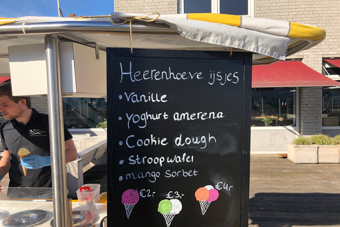 Der Milchviehbetrieb „De Heerenhoeve“ der Familie Vesseur bei Oostburg lädt zu Milchgenuß auf vielerlei Art ein: Die frische, unbehandelte Weidemilch der über hundert Kühe kann täglich von 8.00 bis 20.00 Uhr aus dem Milchautomaten gekauft werden. Mehrwegflaschen von 1 und 2 Litern können auf dem Bauernhof gekauft werden, auch eigene Flaschen oder Kannen können von Frischmilchliebhabern mitgebracht und befüllt werden. Aus der Milch von den seeländischen Poldern stellen die Vesseurs auf „De Heerenhoeve“ aber auch traditionell Bauernhofpudding, Joghurt und Eis sowie Eistorten in verschiedenen Geschmacksrichtungen her. Das traditionelle Bauernhofeis wird in über 30 Geschmacksrichtungen in der Saison angeboten. Auch die Puddings, Joghurts und Eiscremes werden ganzjährig im Bauernhofladen verkauft. Das Eis gibt es im Hörnchen und in 750 ml und 5 l-Bechern zum Mitnehmen und auf Bestellung in größeren Mengen; im Sommer ist ein mobiler Eisverkäufer mit einem motorisierten Dreirad auch in Cadzand-Bad unterwegs.