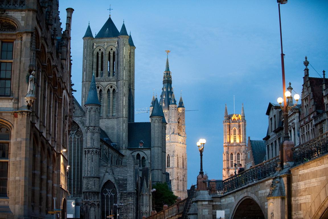 Nirgendwo in Gent hat man einen malerischeren Blick auf die drei, die Hansestadt beherrschenden Türmem wie von der Sint-Michielsbrug. Perspektivisch hintereinander gestaffelt zeugen mit diesem Panorama die Sint-Niklaaskerk, der Belfort und die Sint-Baafskathedraal von der im 14. und 15. Jahrhundert nach Paris zweitgrößten Stadt nördlich der Alpen.