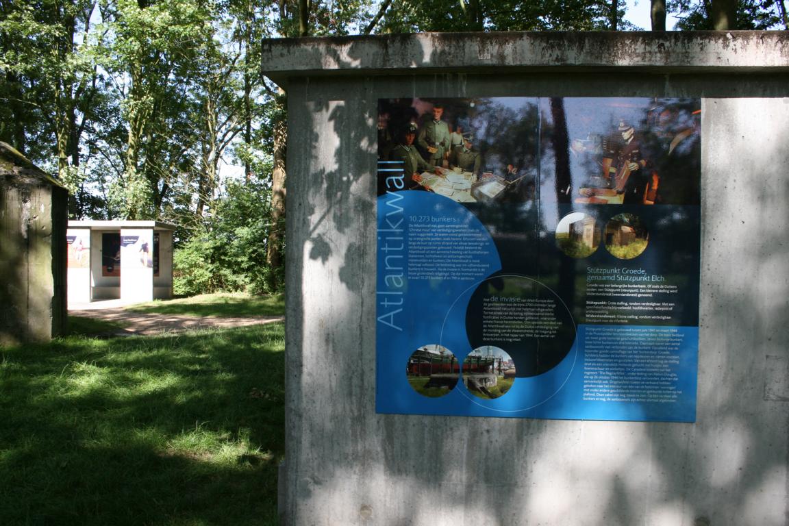 Von Juni 1941 bis Oktober 1944 war hier der „Stp. 3/1712“ der deutschen 3. Abteilung des Artillerie-Regiments 1712 im 2. Weltkrieg: Ein perfekt getarntes Dorf aus zwei Torbruk-Bunkern und elf Geschützbunkern, die mit aufgemalten Dächern, Türen, Fenstern und Gardinen sowie angepflanzten Gärten getarnt zusammen mit über 8.000 anderen Bunkern als Atlantikwall Nazideutschland vor dem Angriff der Allierten schützen sollte. Die Bunkeranlage in Groede war mit fünf 10,5 cm Artilleriekanonen mit einer Reichweite von mehr als 18 Kilometer und vier Mörserstellungen ausgestattet. Der Stützpunkt diente sowohl zur Verteidigung der Küstenlinie als auch für Angriffe von der Landseite und war mit Luftabwehr, Panzersperren, Minenfeldern und Maschinengewehr-Stellungen befestigt. Gut ausgestattet war er zudem mit Be- und Entladeeinrichtungen, einer Kücheneinheit, einem Erste-Hilfe-Posten, einem Krankensaal sowie Unterkünften für die Soldaten und und nicht zuletzt mit Munitionsbunkern. Insgesamt 250 deutsche Wehrmachtssoldaten waren hier stationiert und täglich mit Übungen, Kommunikation, Absicherung und Unterstützung der umliegenden Einheiten sowie dem Anlegen von Minenfeldern und Sperren entlang der Küstenlinie zwischen Breskens und Cadzand beschäftigt. Als die sich kanadischen Truppen am 25. Oktober 1944 im Zuge der „Operation Switchback“ dem gut getarnten Bunkerdorf in Groede näherten, ergaben sich die deutschen Soldaten den Alliierten ohne Widerstand und Blutvergießen.