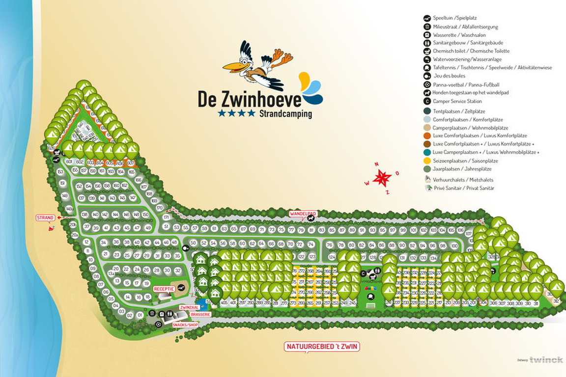 Der Ardoer-4-Sterne-Strandcampingplatz „De Zwinhoeve“ befindet sich in mehrfacher Hinsicht in einzigartiger Lage: Direkt neben dem niederländisch-belgischen Naturschutzgebiet „Het Zwin“ und nur wenige Meter von der Nordsee entfernt am Fuße der Dünen und des Deiches gelegen – und ist damit westlichster Campingplatz der Niederlande. „De Zwinhoeve“ ist aber nicht nur ein ruhiger Familiencampingplatz mit Stellplätzen für Zelte, Wohnwagen, Camper-Vans, Reisemobile oder Autos mit Dachzelten sondern bietet auch urige Holz-Lodges und Chalets als mietbare Ferienunterkünfte für Urlauber, die die lockere Atmosphäre eines Campingplatzes mit dem Komfort eines festen Hauses genießen wollen. Der Platz liegt südwestlich von Cadzand-Bad in Richtung des kleinen Polderdorfes Retranchement.
