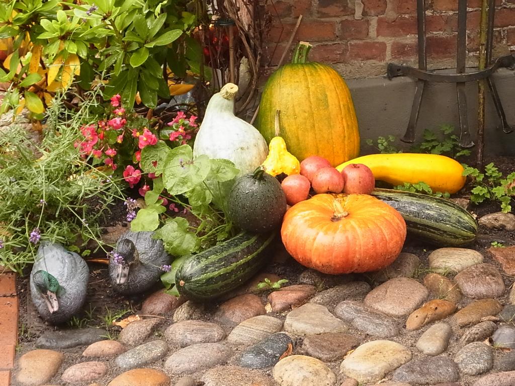 Besucher können Ihre eigene Herbstschale zusammenstellen: Sie wählen eine Schale aus, pflücken die gewüsnchten Kürbisse aus den Kürbisgewölben, schneiden die schönsten Früchte im Gewächshaus und können dann die Schale mit Sedum, Blättern oder anderen Naturmaterialien dekorieren. Die Kosten hängen von der gewählten Schale ab und beginnen bei 18,50 €. Auch für die Kinder gibt es lustige kleine Schalen für 8,50 €, mit denen sie ihr eigenes Herbststück herstellen können. Im Preis enthalten sind eine Tasse Kaffee/Tee mit Kuchen und für die Kinder ein Glas Limonade mit etwas Süßem.