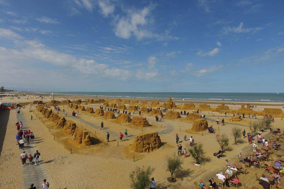 Auf mehr als 10.000 Quadratmetern Fläche erheben sich beim Sandskulpturenfestival in Middelkerke – früher Oostende – 150 zwei bis zwölf Meter hohe Sand-Statuen als Dinosaurier, Fabel- und Comicwesen. Die Figuren können Besucher auf einem 1.000 Meter langen Parcours besichtigt werden.