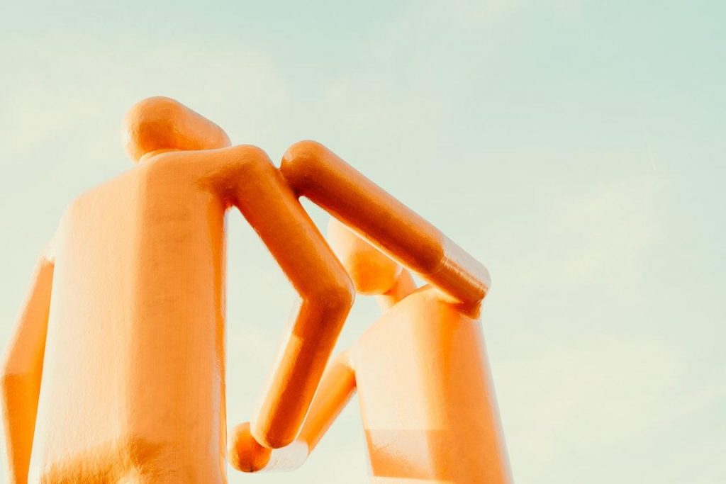 Diese beiden knapp zehn Meter hohen Figuren, die sich auf dem Abraham Hansplein, wo sich der Verkehr aus dem Landesinneren und der von der Küstenstraße in Knokke-Heist kreuzen, zu begrüßen scheinen, haben einen offensichtlichen symbolischen Wert. Die Fiberglas-Skulpturen des niederländischen Bildhauers und Objektkünstler Joep van Lieshout (1963) aus dem Jahr 2000 strahlen durch ihre Farbe und ihre Monumentalität eine gewisse Wärme und Großzügigkeit aus. Unwirklich und doch faszinierend, provokativ und gleichzeitig ein erkennbares Wahrzeichen der Gemeinde Knokke-Heist. Van Lieshout, der sich selbst als Superindividualist bezeichnet, stellt weltweit aus und ist vor allem für seine Polyesterstrukturen bekannt. Inhaltlich ist sein Werk eine Kombination aus verspieltem Humor und Ernsthaftigkeit, Erkennbarkeit und Abstraktion, Wärme und Distanziertheit.