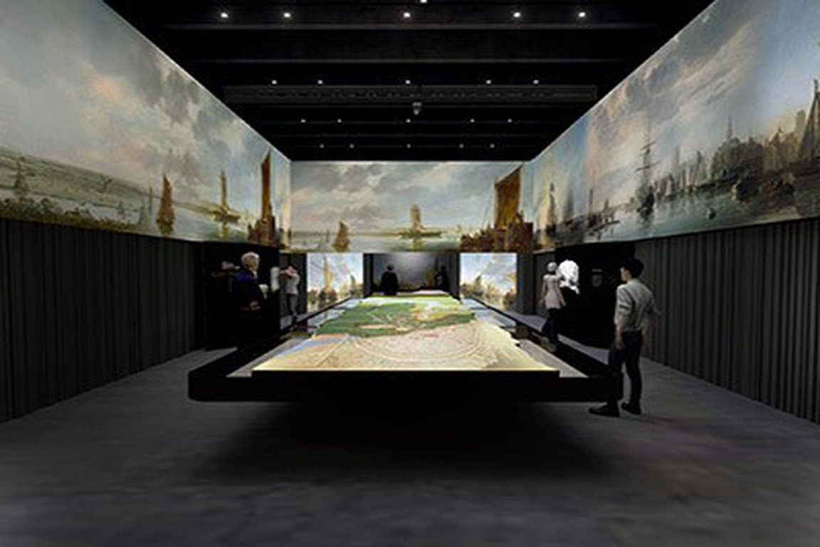 In den Ausstellungsräumen und im Aussichtszentrum des Parks treten Besucher eine Zeitreise in das Mittelalter an, innovative Technologien wie Augmented Reality (AR) und Virtual Reality (VR) machen es möglich. Im Ausstellungssaal im ersten Stock sehen Besucher die Entwicklung der Zwinrinne in Projektionen auf einem großen Modell der Zwinrinne und archäologische Funde aus der Zeit. In einem immersiven Raum mit drei Bildschirmen kann man in Lebensgröße bestaunen, wie es in der damaligen Zeit aussah, wenn man die Zwinrinne mit dem Boot entlangfuhr: Eine faszinierende Visualisierung mit fahrenden Booten, dem Treiben der internationalen Kaufleute, den verschiedenen Häfen und dem Ausladen der Waren. Auch selbst können Besucher aktiv werden und die Zwinrinne im Sand nachbauen; dabei lernen sie die Wechselwirkungen
