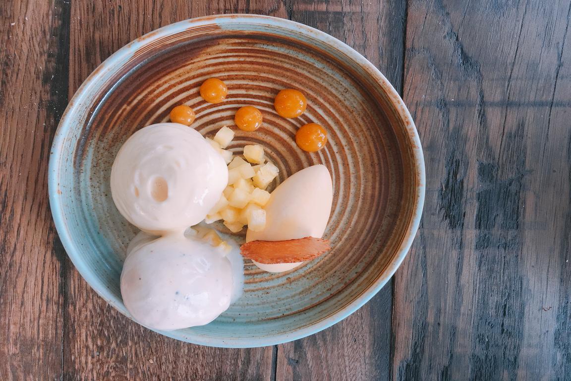 Als Vorspeise erfreute uns der maritim-frisch schmeckende Hummerkrabbensalat mit leicht würzigem Kräutersalat, serviert mit knusprigem Baguette und aromatisch-salziger „Beurre D’Isigny“ im Butterfässchen. Beim Hauptgericht konnten wir nicht anders als geschmacklich in „Cadzandria“-Erinnerungen schwelgen wollen – und so wählten wir die „Bouilabaisse Royale“. Die schon früher Bas Diericks Ruf als Top-Gastronom begründete Fischsuppe war erneut eine maritime Genusserfahrung auf hohem Niveau: Reich gefüllt mit dreierlei Muscheln, zweierlei Fisch, zwei Gambas und Meeresspargel („Zeekral“), aromatisch zubereitet und optisch appetitlich angerichtet. Kurzum: „Lecker, lecker wie immer“. Auch das Dessert beweist – die „Cadzandria“-Kochkunst lebt weiter: Das Dreierlei aus leichter Duindoorn-Praline, Calamansi-Zitrusfrucht, Bananeneis und kleinen Ananasstückchen bot den krönenden Abschluss des mittäglichen Gourmet-Ausfluges im „Bistro Beaufort“.