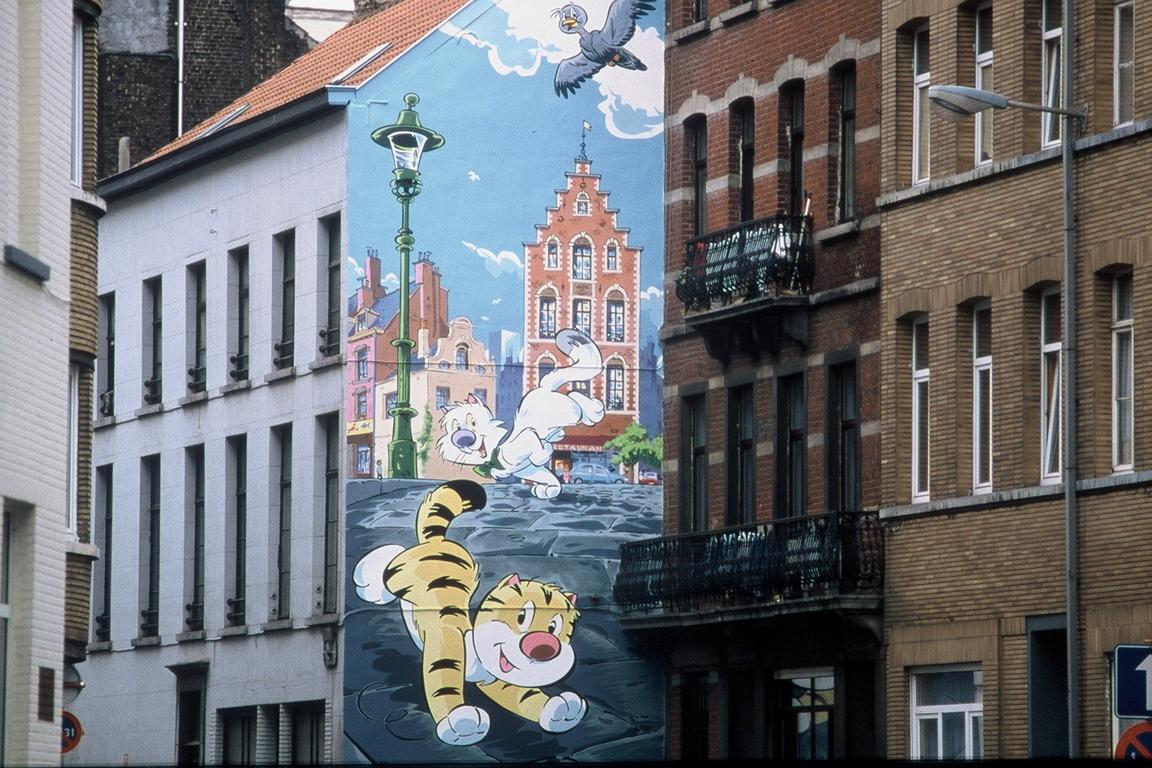 So ist zum Beispiel nur wenige Meter von „Manneken Pis“ und vom „Grote Markt“ der wohl größte Comic-Held der Belgier verewigt: Tim (Tintin), Kapitän Haddock und Struppi (Milou) fliehen auf Hauswand der Rue de l’Étuve 33, 1000 Bruxelles, über eine Treppe. Die Szene stammt aus dem Band „Der Fall Bienlein.“