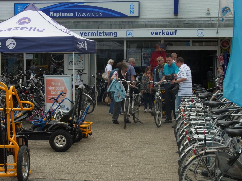 Im Ortszentrum in zentraler Lage in der Ladenzeile am Duinplein in Cadzand-Bad bietet „Neptunus Tweewielers“ seit 25 Jahren fachkundige Beratung, einen Fahrrad-Shop mit Reparatur-Werkstatt sowie solide Fahrräder mit mindestens drei Gängen und der Wahl zwischen Hand- und Rücktrittbremse als Standardausstattung. Im großen Vermiet-Angebot sind auch „Mamafiets“ mit zwei Sitzen vorne und hinten sowie Tasche, „Bakfiets“ mit einem Kasten zum Kindertransport und natürlich Kinderräder in unterschiedlichen Größen. Zudem vermietet „Neptunus Tweewielers“ Hundekörbe fürs Rad, Bollerwagen, Tretautos für 2 oder 4 Personen und natürlich auch Elektro-Bikes.