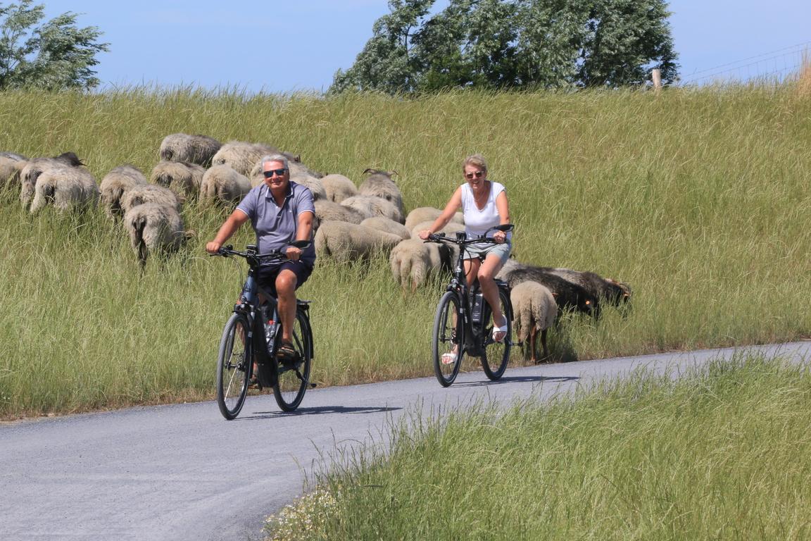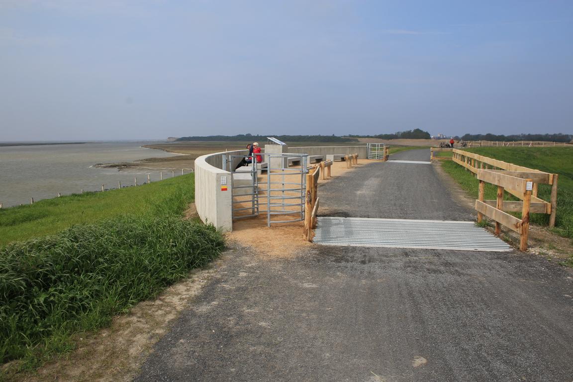 Die vier Rastplätze auf dem Deichdamm sind mit Fahrradständern und Ruhebänken ausgestattet; Informationstafeln geben den Besuchern Informationen über das Zwingebiet.