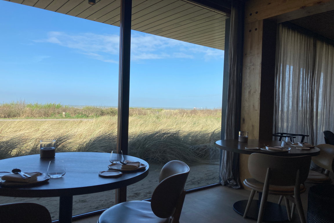 Das Interieur des „Demain“ wurde auch mit sensibler Hand renoviert – die teilweise aus dem „Pure C“ übernommene Möblierung bietet noch pointierter den Blick auf die Dünen von Cadzand-Bad durch die raumhohen Fensterfront. Der beeindruckende Weinkeller aus dem „Pure C“ ist natürlich geblieben, die Tischanordnung dafür etwas lockerer und damit more casual. Das Konzept des „Demain“ im Strandhotel Cadzand-Bad verspricht damit einerseits kreative Gourmet-Küche mit andererseits einem nicht komplett in den Michelin-Sterne-Himmel abgehobenen Preisniveau. Und das „Demain“ spricht damit bewusst nicht nur Feinschmecker und Gäste aus dem „Strandhotel“ sondern auch aus der Umgebung an – und auch Cadzand-Urlauber, die sich mal einen außergewöhnlichen Restaurantbesuch gönnen wollen.