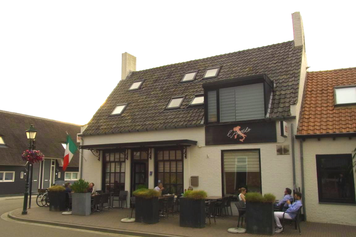„Bella cucina Italia“ in Cadzand: Das Restaurant „l`Angelo“ in Cadzand-Dorf läßt im Cadzand-Urlaub mediterrane Gastrokultur im südöstlichen Teil der Niederlände aufleben. An der Ecke („angolo“) der Kreuzung von Erasmusweg und Badhuisweg haben Natale Amoruso, gebürtiger Süditaliener aus Bisceglie bei Bari, und Marco Dhaenens das authenisch italienische Restaurant etabliert. Vor dem „l´Angelo“ laden 30 Sitzplätze an der Straße zum Genießen ein; da kaum Autoverkehr im Dorf herrscht, kann man hier in Ruhe mit Blick auf Kirchturm und mit Blumenampeln geschmückte Retro-Straßenlaternen entspannt verweilen.Im hinteren Bereich des Gebäudes bietet „l`Angelo“ nochmals circa 12 Sitzplätze im Innenhof, die ein Italo-Feeling aufkommen lassen. Erst recht italienisch wirkt der Gastraum innen mit seiner gemütlichen Einrichtung und Dekoration mit Fotos italienischer Schauspieler wie Sophia Loren, Gina Lollobridgida oder Marcello Mastroianni.