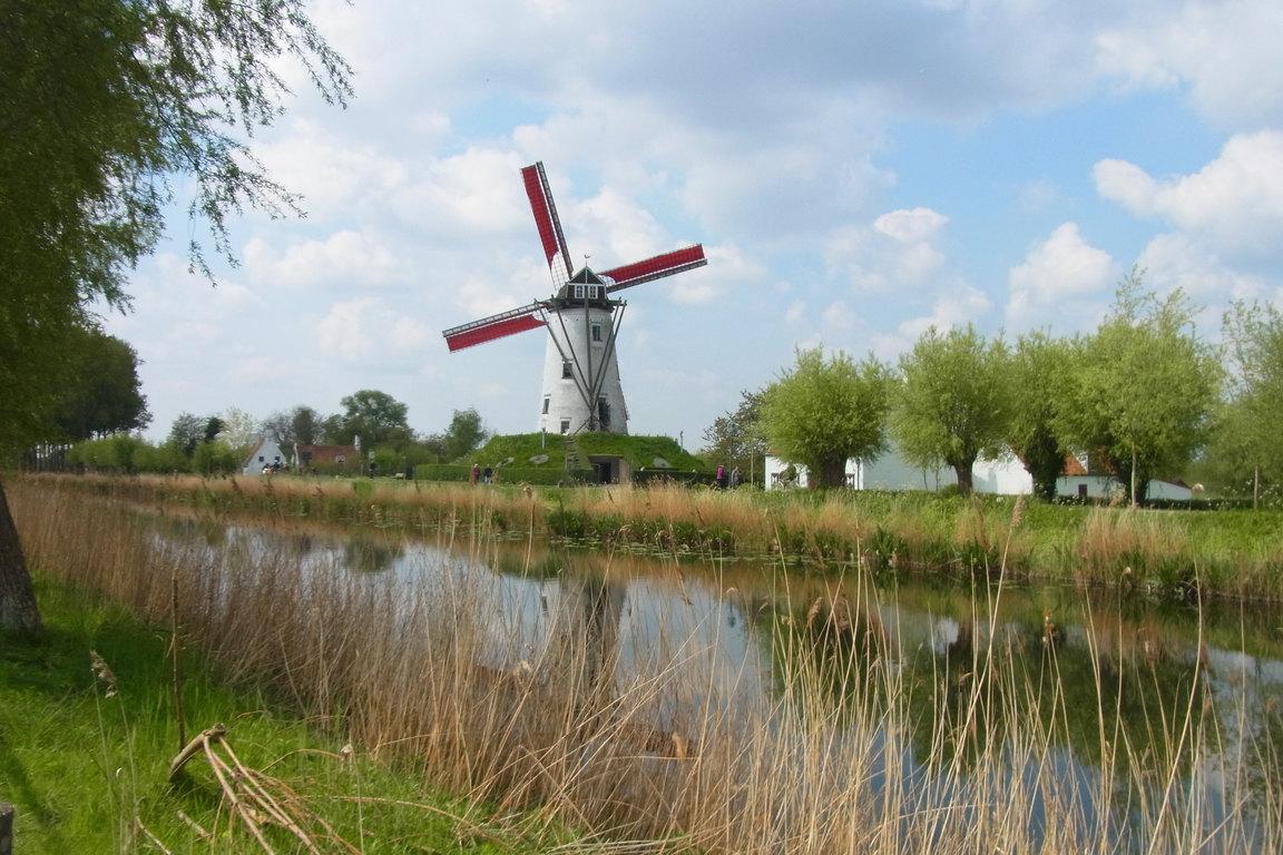 Besonders malerisch liegt die weißgeschlemmte Schellemühle im belgischen Damme am Kanal Damse Vaart, der Brügge und Sluis als Wasserweg verbindet. Die steinerne Windmühle wurde 1867 auf dem Fundament einer alten Holzmühle am Kanal erbaut; schon 1479 stand hier die erste Windmühle. In dem Mühlenwall ist eine Ölmühle untergebracht. Für den regelmäßig auf dem Damse Vaart-Kanal zwischen Damme und Brügge verkehrenden Schaufelraddampfer „Lamme Goedzak“ stellt die Dammer Schellememühle eine tolle Postkartenkullise dar.