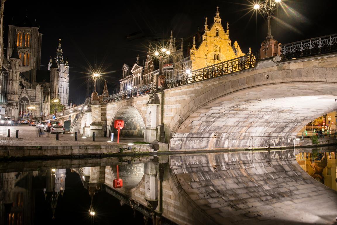 Die steinerne Bogenbrücke „Sint-Michielsbrug“, die die Leie zwischen „Korenlei“ und „Graslei“ überbrückt, ist deshalb der beste Punkt um einen Rundgang durch die „Stadt der Türme“ zu krönen – nur um den Blick zu genießen oder um ein Panoramafoto oder ein Selfie zu machen.
