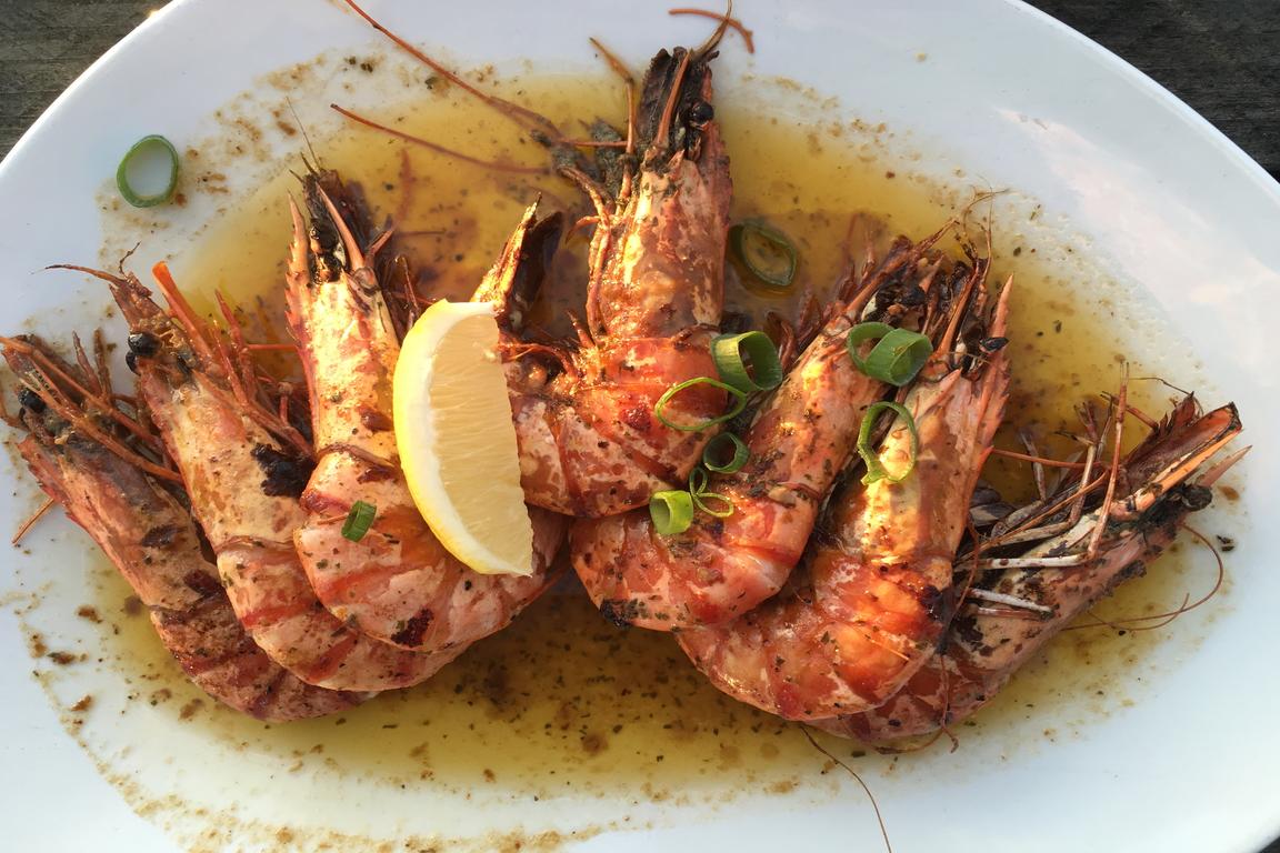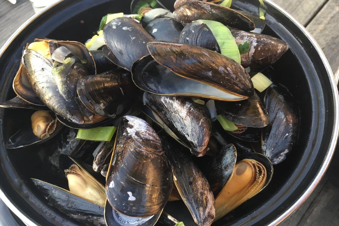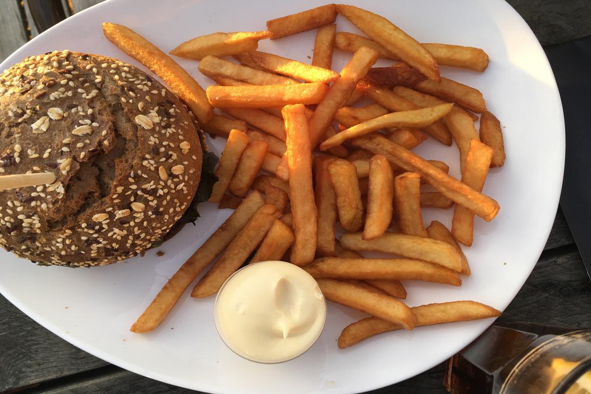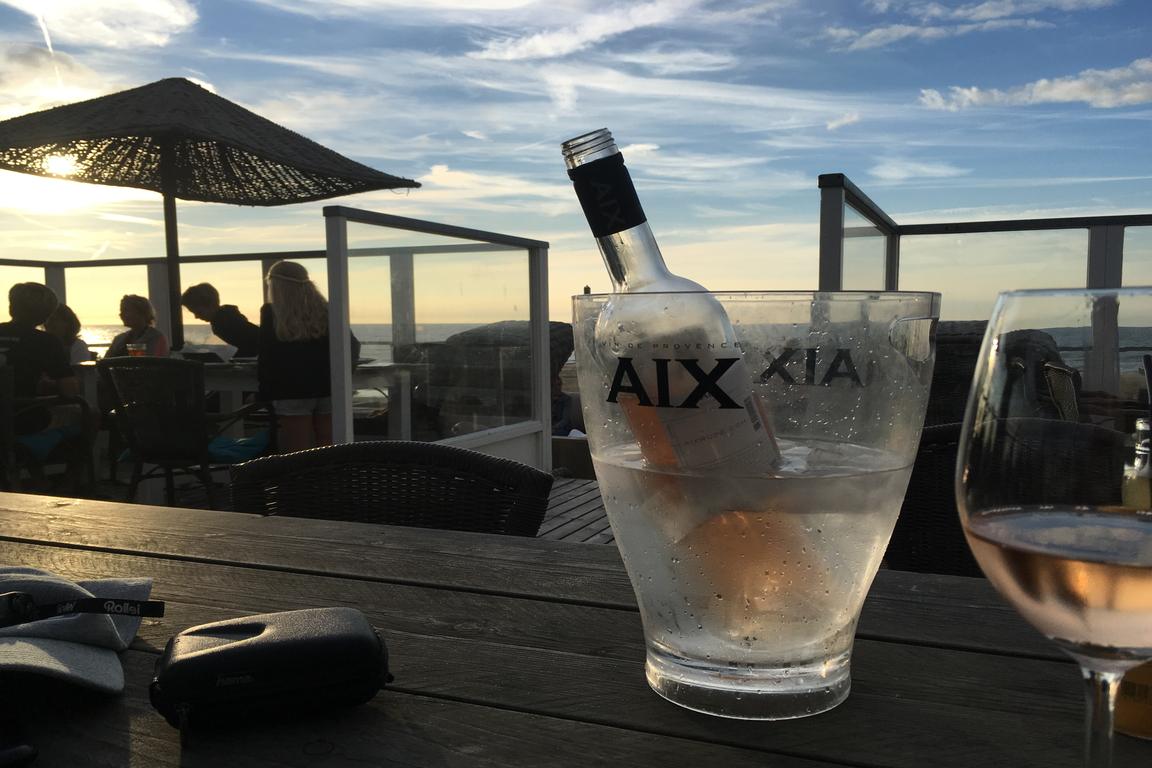 Uns gefiel bei einem sommerlichen Sonnenuntergangs-Dinner auf der Südterrasse nicht nur die maritim-mediterrane Stimmung mit ChillOut-Klänge im Hintergrund, sondern zur Einstimmung der passend gut gekühlte Rose‘ des provencalischen Weingutes „AIX“. Unsere drei Hauptgerichte waren perfekt gerichtet und serviert: Der zur Strandlocation, zum Sound und zur Stimmung passende Hit waren die sechs „Gamba’s a la plancha“: Die richtige Größe, auf den Punkt gegrillt, spanisch gewürzt. Ebenso wurden die flandrischen Geschmäcker bestens befriedigt: Die „Mosselen in Weisswein“ mit Fritten stimmten in Größe, Menge und Geschmack. Und der „Beachhouse Burger Deluxe“ sorgte bei „No Fish-Fraktion“ für viele „Mmmhhhms“ mit vollem Munde und einer „Sehr lecker“-Antwort nach Finalisierung.