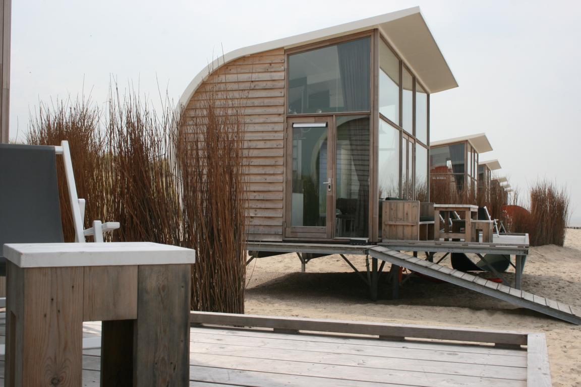 Eine großzügige Terrasse mit Möblierung wie Tisch, Bank, Liegestühlen und Windschutz bieten zusätzlichen Outdoor-Wohnraum an Strand. Gratis WLAN und ein Tablet PC sorgen bei Interesse dafür trotz dieses intensivem Naturwohnerlebnis für die Verbindung mit der Welt, Frühstücks- und Gepäckservice für quasi Hotelkomfort. Die Strandhäuschen von Strandcamping Groede stehen von März bis Oktober zur Vermietung bereit.