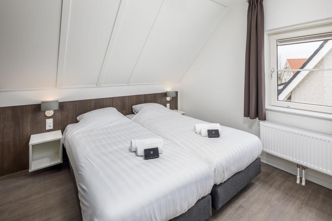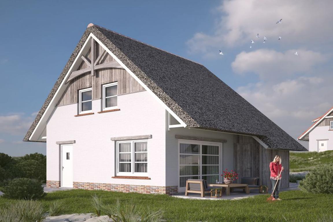 Die reetgedeckten Villen des Typs V4 Luxe sind zweigeschossige, freistehende Ferienhäuser im neuen Ferienpark „Beach Resort Nieuwvliet-Bad“ und bieten auf 70 Quadratmetern Grundfläche Platz für vier Personen. Die zwei Schlafzimmer mit modernen Boxspringbetten, eines davon mit zusätzlichem Fernseher, befinden sich Obergeschoß ebenso wie die zwei Badezimmer, eines davon bietet eine Infrarot-Sauna. Das separate Gäste-WC sorgt für ungestörten und stresslosen Hygienebetrieb in den Ferien in Nieuwvliet-Bad.