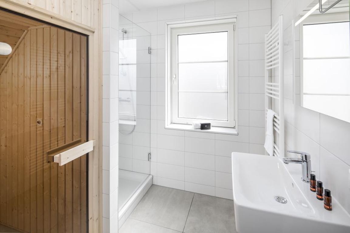 Die elf zweigeschossigen Ferienhäuser des Typs V8 Luxe sind freistehende Villen im 2018 errichteten Ferienpark „Beach Resort Nieuwvliet-Bad“ und bieten auf 97 qm2 Grundfläche Platz für acht Personen. Die insgesamt vier Schlafzimmer auf zwei Etagen sind mit komfortablen Einzel-Boxspringbetten, einige mit Smart-TV-Geräten, die drei Badezimmer sind alle mit Duschen, eine davon mit Infrarot-Sauna ausgestattet. Zwei separate Toiletten sorgen für ungestörten und stresslosen Hygienebetrieb in den Ferien in Nieuwvliet-Bad.