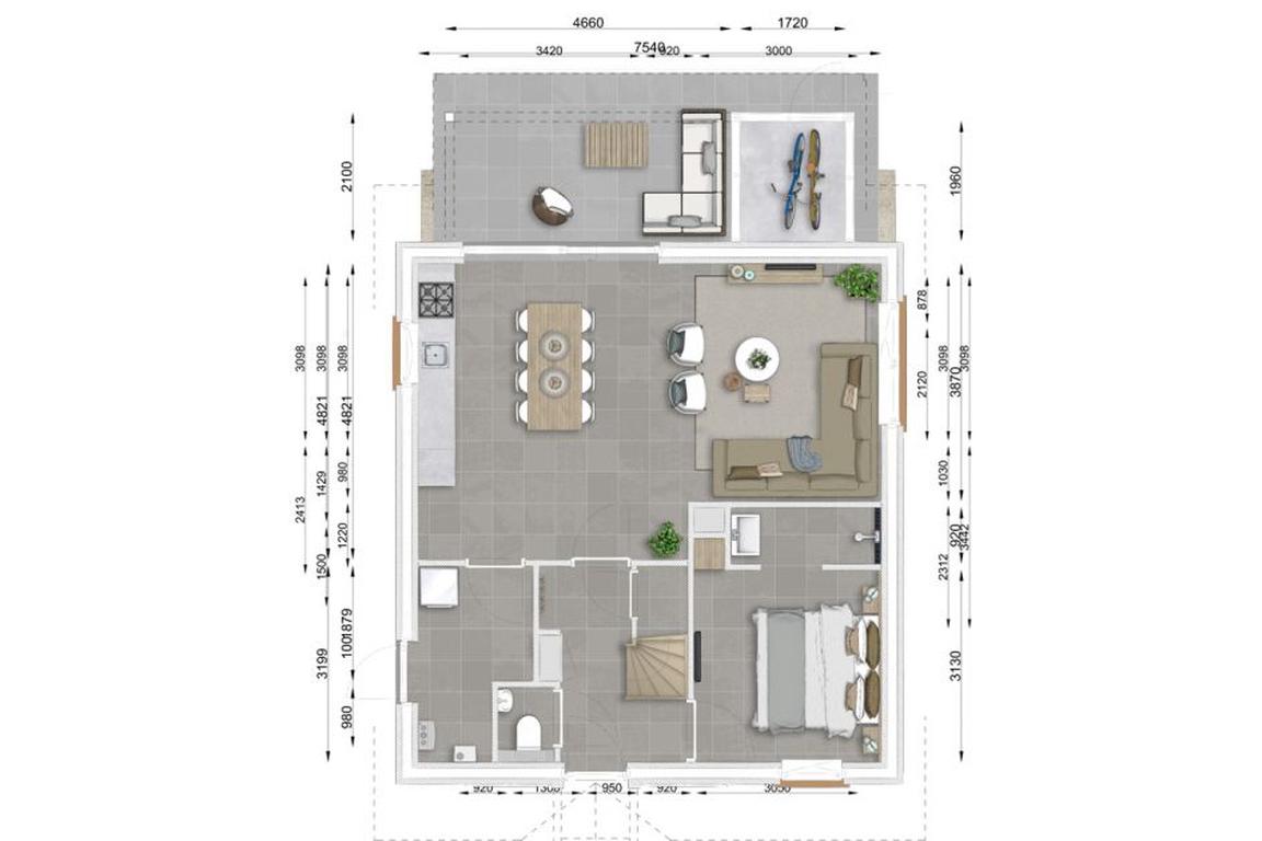 Vierflammiger Gasherd, Dunstabzugshaube, Wasserkocher, Nespressomaschine, Kühlschrank mit Gefrierfach, eingebauter Kombi-Mikrowelle und Geschirrspüler sind Bestandteile der offenen und modernen Küche. Sie schließt direkt an das gemütlich eingerichtete Wohnzimmer an, das einen gemütlichen Sitzbereich mit einem großen Eck-Sofa, zwei Sesseln und einem Couchtisch sowie einem großzügigen Esstisch mit Sitzmöglichkeiten für alle acht Mieter der Ferienvilla bietet. Waschmaschine und Trockner sind in den Villen des Typs V8 Luxe ebenso vorhanden wie ein Abstellraum für zwei Fahrräder an der Terrasse.