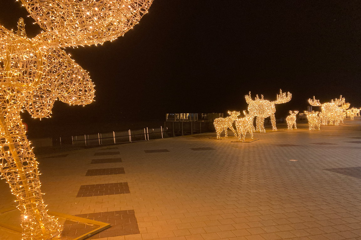 Im Dezember glitzert auch die Strandpromenade von Knokke-Heist in adventlicher Stimmung: Zwischen den Ortsteilen „Het Zoute“ und „Duinbergen“ erfreuen im Dezember ganze Herden von Elchen im XXL-Format und große Toren, die aus LED’s konstruiert auf der Promenade aufgebaut sind, abendliche Spaziergänger bei Dunkelheit. Die Tore laden zu romantischen Selfies ein und leiten von der einen Lichterherde zu der nächsten Gruppe von illuminierten Elchen.