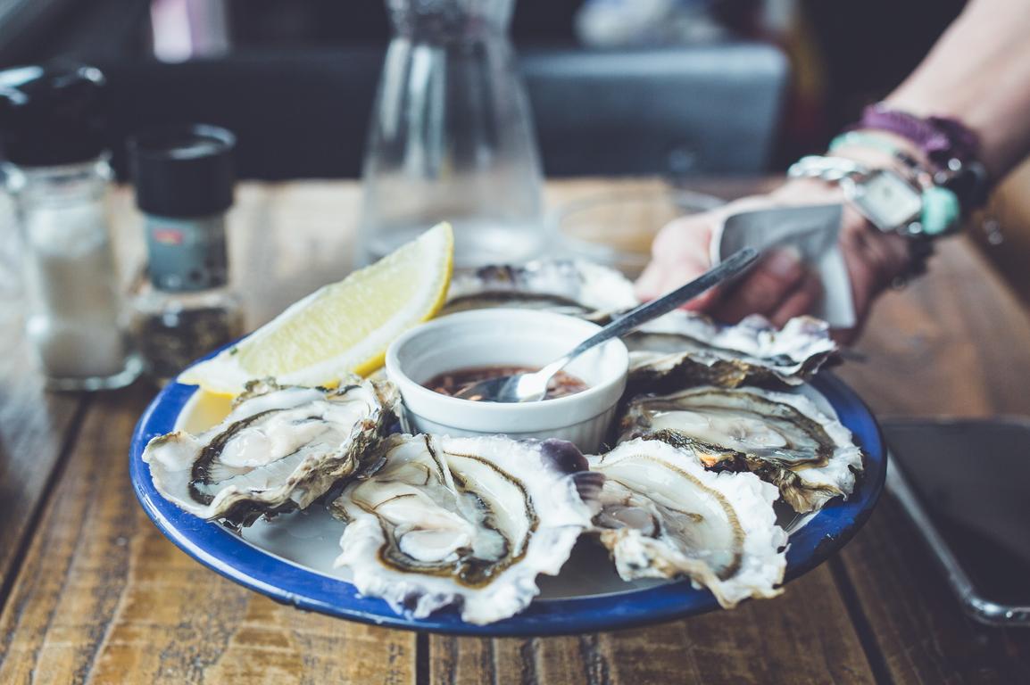 Die waren Genießer essen die Austern gut gekühlt auf zerstossenem Eis maximal mit einem darauf geträufelten Spritzer Zintronensaft und achten beim Schlürfen darauf, möglichst viel von dem Salzwasser in der Austernschale mitzubekommen. Die richtige flüssige Begleitung dabei ist ein gut gekühlter, leichter und trockener Weiswein wie er in der Regel auch bei Restaurants und Strandpavillons in Cadzand-Bad mit Austern im Angebot auf der Speisekarte angeboten wird.